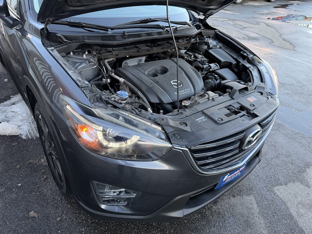 Here is our 2016 Mazda CX-5 Grand Touring! This Mazda is fully loaded with smart key access with push to start, a leather interior, heated seats, Navigation, a sunroof, Bluetooth With Pandora, a backup camera, a blind spot monitor system, adaptive xenon headlights with led daytime running lights, led fog lights and so much more! It has been fully serviced with brand new brakes both in the front and in the rear, a brand new set of all season tires, two brand new lower control arms with ball joints, outer tie rods, an alignment, synthetic oil change, new all season floor mats and more leaving this Mazda now ready for a new home!